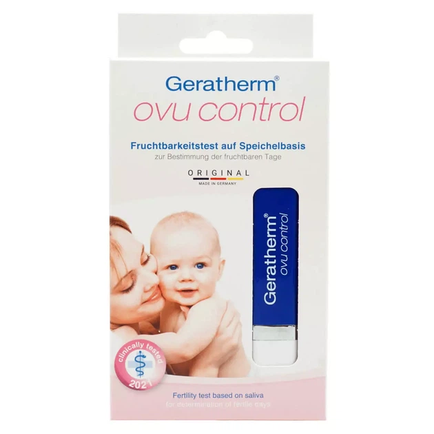 Овуляційний тест Geratherm Ovu Control — це аналіз слини, що використовується для визначення днів фертильності перед і під час овуляції. Компактний пристрій являє собою мініатюрний мікроскоп багаторазового використання з LED-підсвічуванням і 50-кратним збільшенням. Він дозволяє досліджувати структуру висушеної слини. На основі цієї структури можна визначити дні запліднення з імовірністю понад 98%. Тест простий у використанні і може значно збільшити шанси на вагітність. Він також є екологічним: тест працює без тампонів або тест-смужок, а тому не створює додаткових відходів.