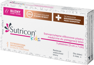 Силіконові пластирі Sutricon для шрамів – ефективний засіб для догляду за шрамами у дітей віком від 6 місяців. Пластирі допомагають зменшити видимість свіжих та старих рубців, роблячи шкіру більш гладкою та еластичною.