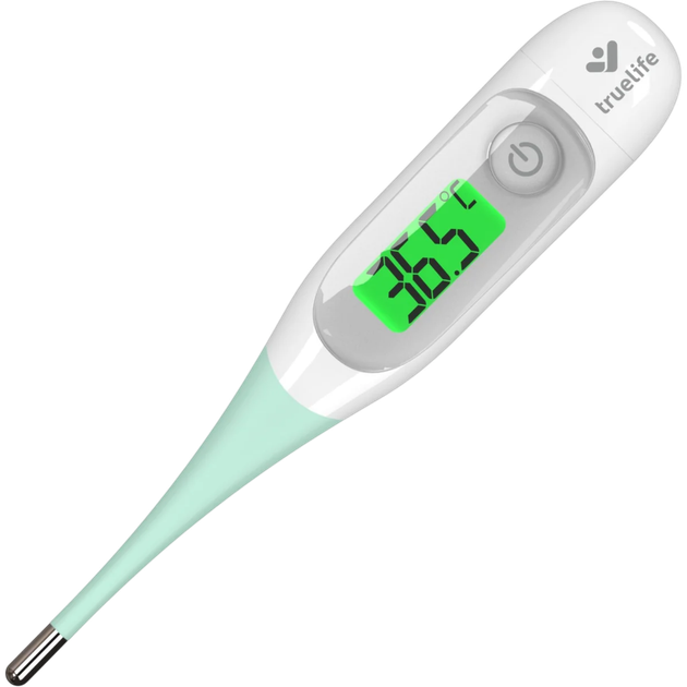 Термометр TrueLife Care T3 — це точний та швидкий цифровий контактний термометр прогностичного типу, створений для комфортного та безпечного вимірювання температури. Завдяки високій чутливості він визначає показники всього за 5–10 секунд, а точність у діапазоні 35.5–42 °C становить ±0.1°C, що робить його надійним інструментом для щоденного контролю здоров’я. Пристрій підтримує 4 режими вимірювання: оральний, ректальний, під пахвою та у водяній ванні. Гнучкий наконечник забезпечує комфорт, а триколірний дисплей автоматично змінює підсвічування залежно від отриманого результату, наочно сигналізуючи про норму чи підвищену температуру. Термометр має пам’ять на 10 останніх вимірювань, звукові сигнали, індикатор низького заряду та функцію автоматичного вимкнення. Працює від батареї CR2032, якої вистачає приблизно на 1000 вимірювань. Завдяки ступеню захисту IP27, компактним розмірам і вазі лише 21 г, пристрій зручний у використанні та транспортуванні. У комплект входить дорожній футляр, що робить TrueLife Care T3 ідеальним вибором для дому та подорожей.